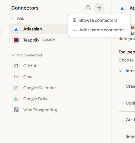To link Teapplix, go to Claude "Customize" page, then go to Connectors:
