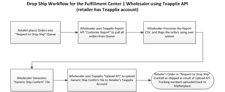 If you are the retailer and plan to submit your orders to drop ship, and you use Teapplix, your workflow is described below: